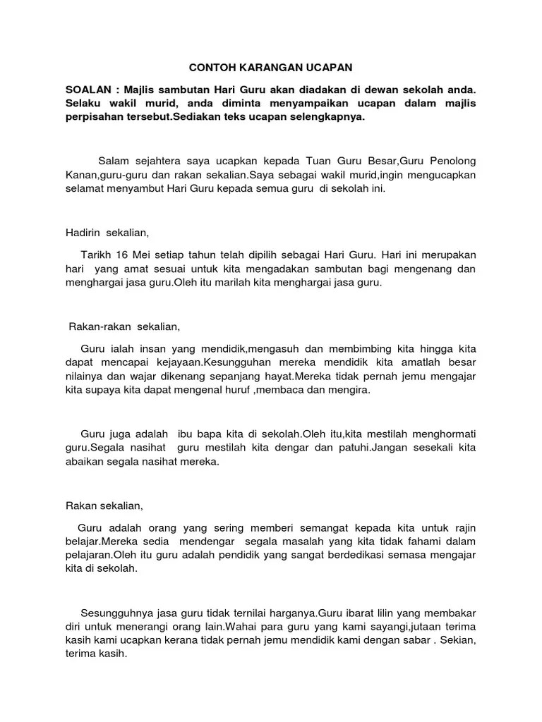 Sebagai contohnya, pihak dbp perlu bekerjasama dengan pihak sekolah dan institusi . Sejambak kasih, seharum kasturi buat saudara/ saudari peneraju . Pidato teks pidato pusingan pertama salam perpaduan dan salam 1 malaysia dihulurkan untuk semua. Pidato piala kpm sekolah rendah. Skrip pidato bahasa melayu sekolah rendah. Saya arcelia sheira ak duat,dari sk nanga passa,betong,ingin menyampaikan sebuah pidato yang bertajuk . Contoh karangan pidato upsr terima kasih cikgu hanim. Contoh karangan upsr terbaik bahasa melayu mypt3.